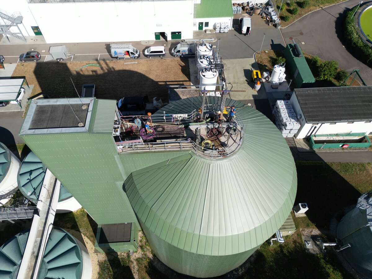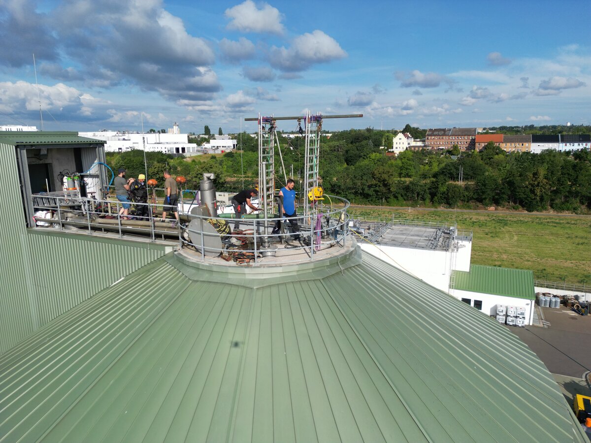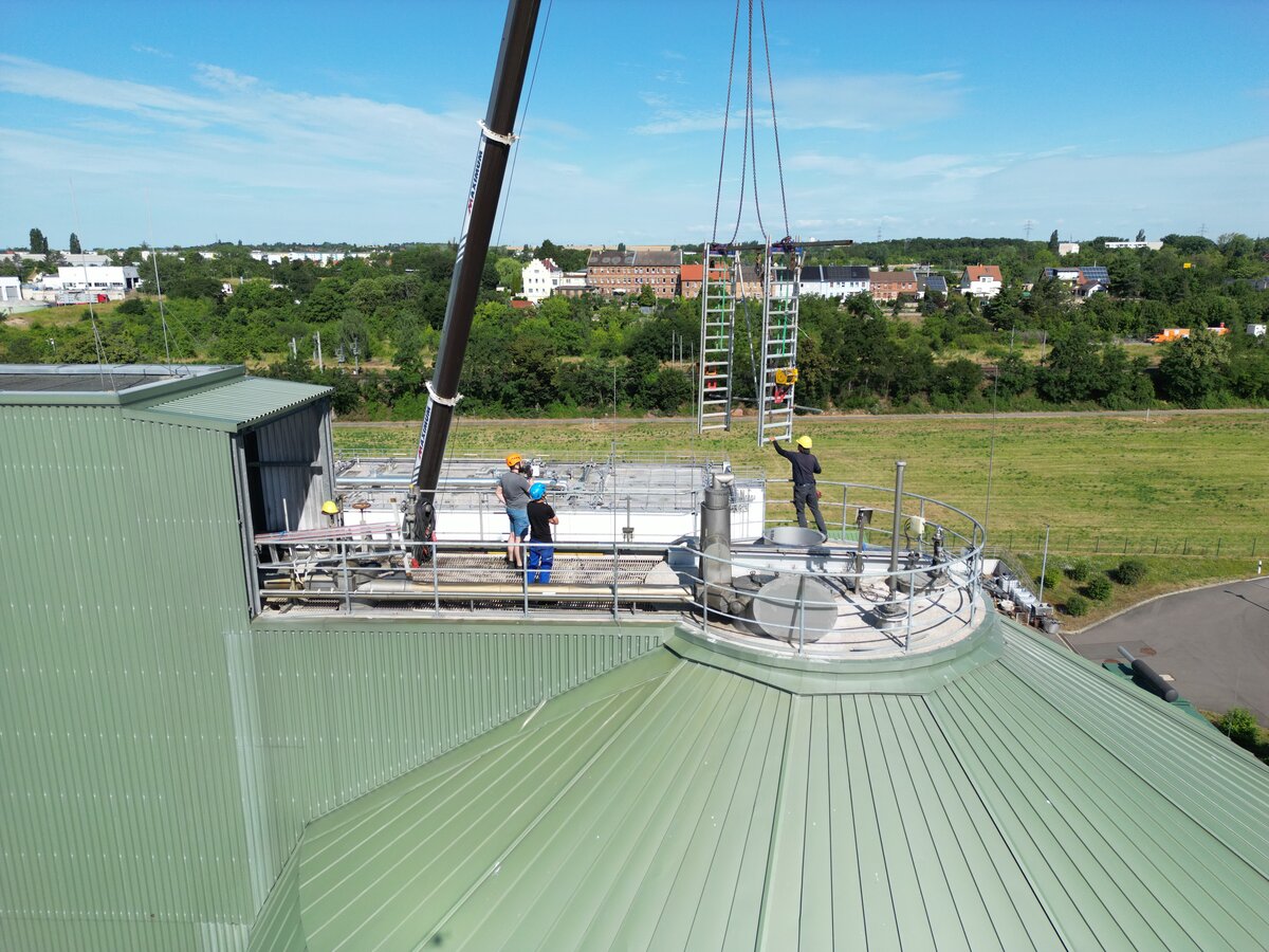 Der neue Einstieg machte nicht nur die aktuellen Instandsetzungen möglich, sondern erleichtert auch künftige Wartungen. Gleichzeitig konnte die Gasproduktion – und damit die eigene Stromerzeugung – wieder stabilisiert werden. Mit dem neuen „Einstiegstor“ ist die Anlage für die kommenden Jahre gut gerüstet. Was nach einem technischen Detail klingt, ist in Wahrheit ein entscheidender Baustein, damit unsere Kläranlage sicher, wirtschaftlich und umweltfreundlich arbeiten kann – im Dienste aller Bürgerinnen und Bürger im Entsorgungsgebiet. Übrigens: Das anfängliche Klopfgeräusch im Turm – ob vom Mischer oder nicht – ist nach dem Einsatz verschwunden.